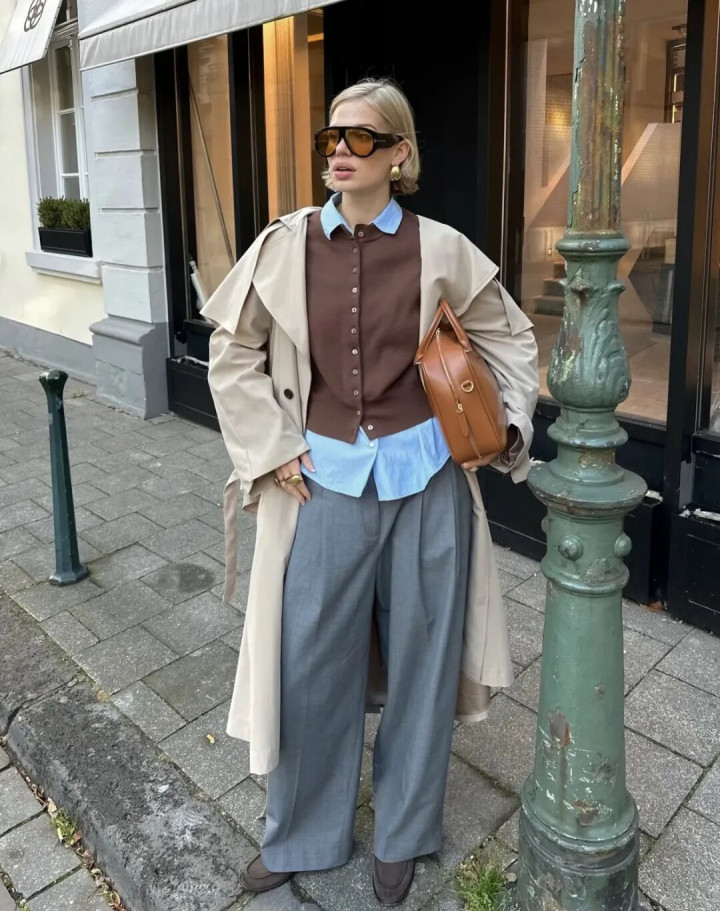 直筒西裤:选垂感羊毛混纺(通勤全能)
